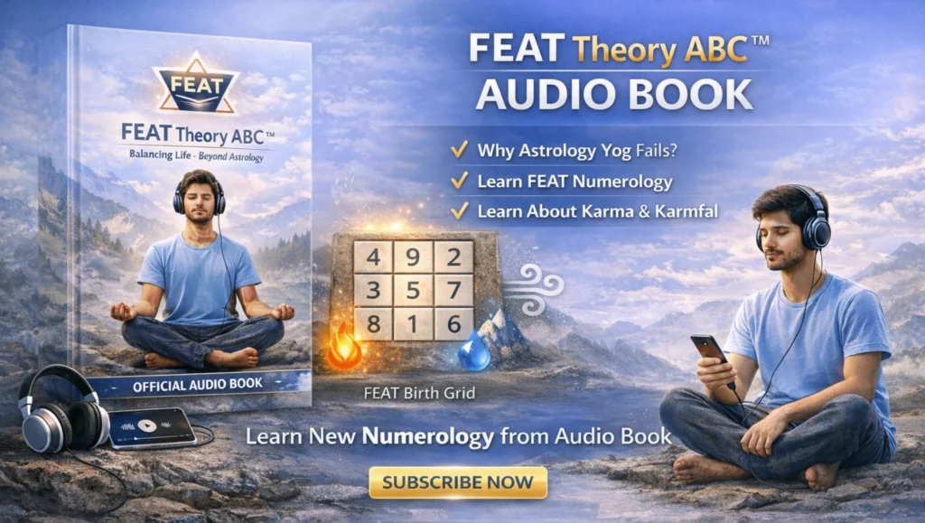 In FEAT Theory ABC, your birth date is not just a calendar entry; it is a precise mathematical code that reveals your “Elemental Concentration” at the exact moment you were born. To crack this code, we use three key keys: Moolank, Bhagyank, and the FEAT Birth Grid (Modified Lo Shu Grid).